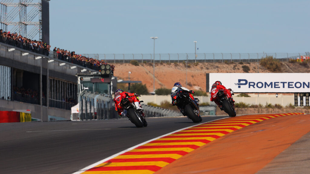 El vigente campeón con la Ducati Panigale V4R del Aruba.It Racing consiguió llevarse la victoria luego de un gran duelo con Razgatlioglu en las primeras vueltas. Pero el ritmo de la moto italiano hizo que saque una brecha y pueda vencer en suelo español.