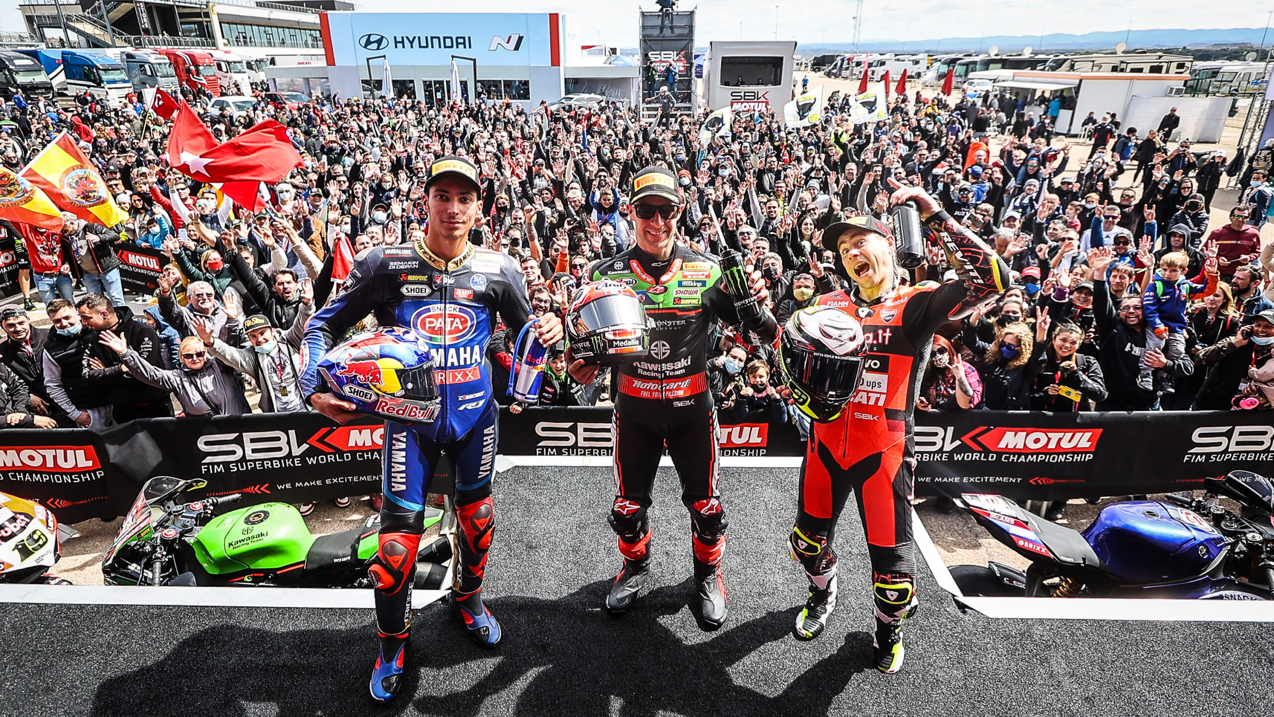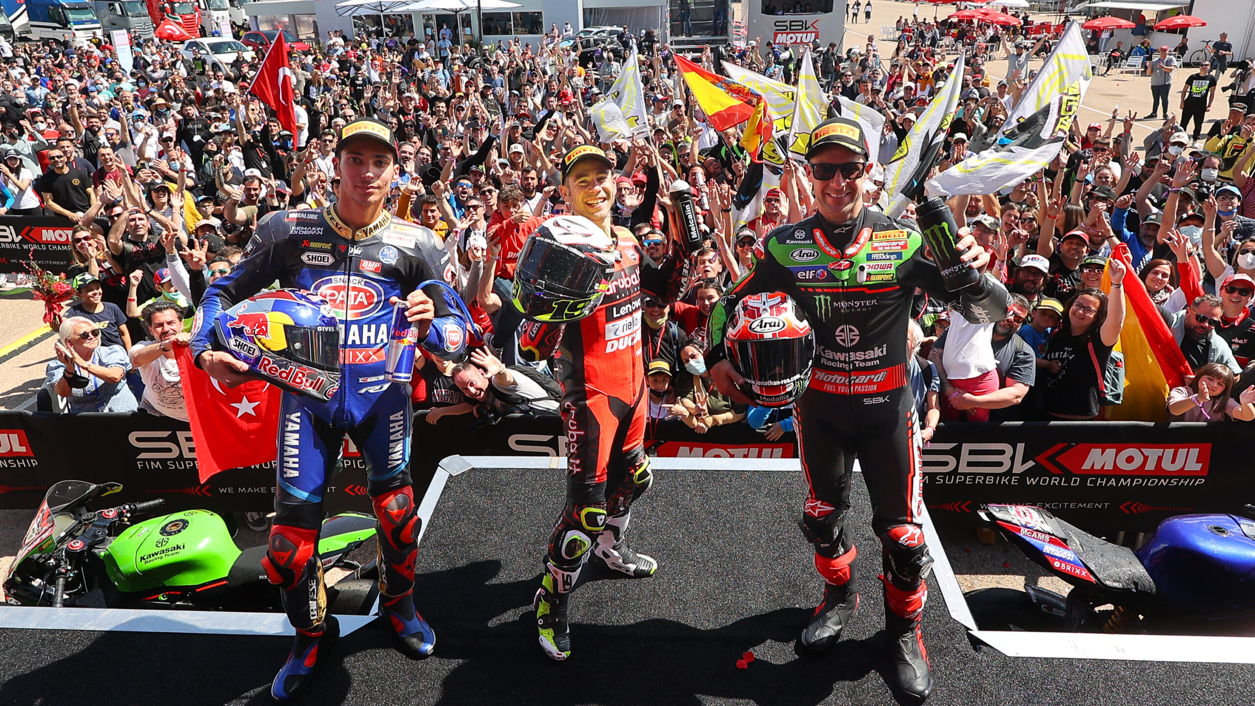 En la primera competencia del fin de semana tuvo como ganador al ex campeón del mundo, hablamos de Jonathan Rea que con la Kawasaki hizo un gran espectáculo junto a Álvaro Bautista. Mientras que atrás el campeón Toprak Razgatlioglu lucho por el tercer puesto.