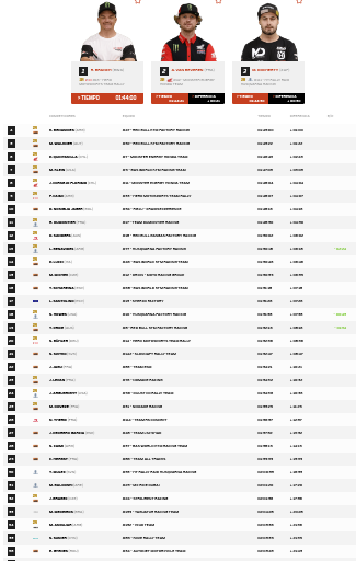 - 4° #47 Kevin Benavides 1:45.00 (+01:00);