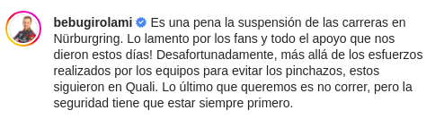 Cabe destacar que los puntos obtenidos en la clasificación seguirán, mientras que las dos carreras serán re programadas para un futuro cercano.