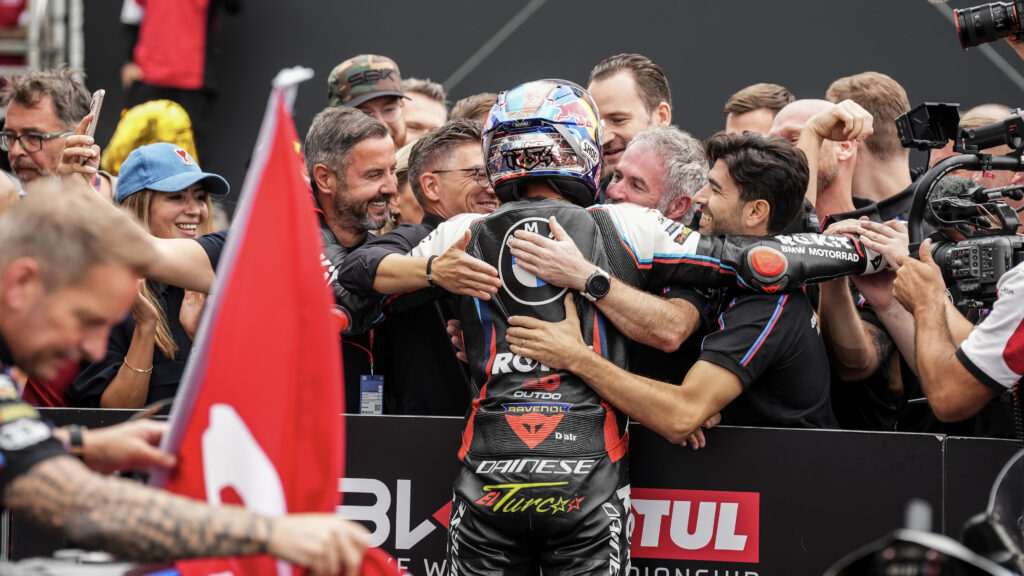 Razgatlioglu, “Para mí es algo muy especial porque ya gané las carreras 800 y 900. Normalmente, no me pongo tan contento por ganar una Superpole Race, ¡pero esta sí! Estoy feliz por eso. Hemos trabajado muy duro y hemos vuelto a ganar. Ahora estoy pensando en la Carrera 2, ya que, si gano de nuevo, haré un triplete. Ese es mi objetivo”.