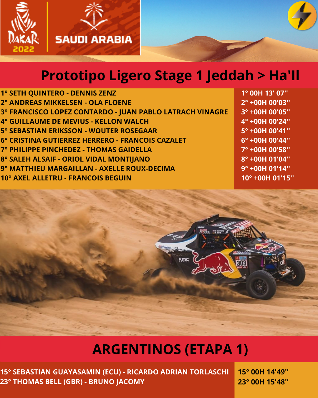 En el prologo de la mañana en Arabia Saudita tuvo al piloto estadounidense Seth Quintero como el más veloz con el prototipo de OverDrive y del equipo Red Bull Off-Road Junior Team USA.