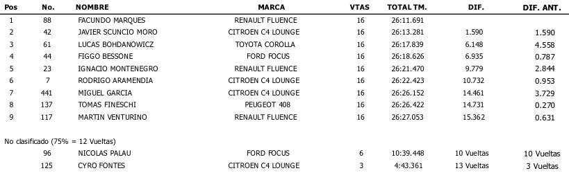 Seguido Bessone también superaba a Fineschi como Montenegro y Aramendia para quedar en el quinto y sexto lugar. Este fue la última maniobra por sobrepasos, ya que la carrera entraba en la última vuelta y daba como ganador a Marques.