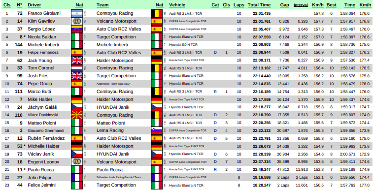 Donde así fue para Franco Girolami, ya que con el Audi RS3 LMS de Comtoyou pudo demostrar un ritmo diferente al del sábado. Con una puesta a punto diferente salto el vehículo y logró sobrepasar a sus rivales sin mayores dificultades.