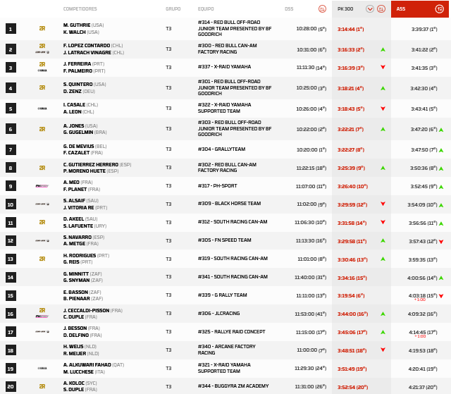 En los prototipos T3 han tenido como referente a la dupla estadounidense con el vehículo de Red Bull Off-Road Junior, tras un gran tiempo en la séptima etapa. Donde Guthrie con Kellon Walch metieron 3:39.37.