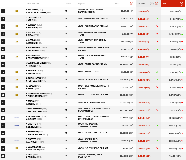 Los demás quedaron Ricardo Torlaschi 19°, Pato Silva 33°, Facundo Jaton 38°. Por último Ramon Nunez con Mauro Esteban Lipez aún no llegó a la meta.
