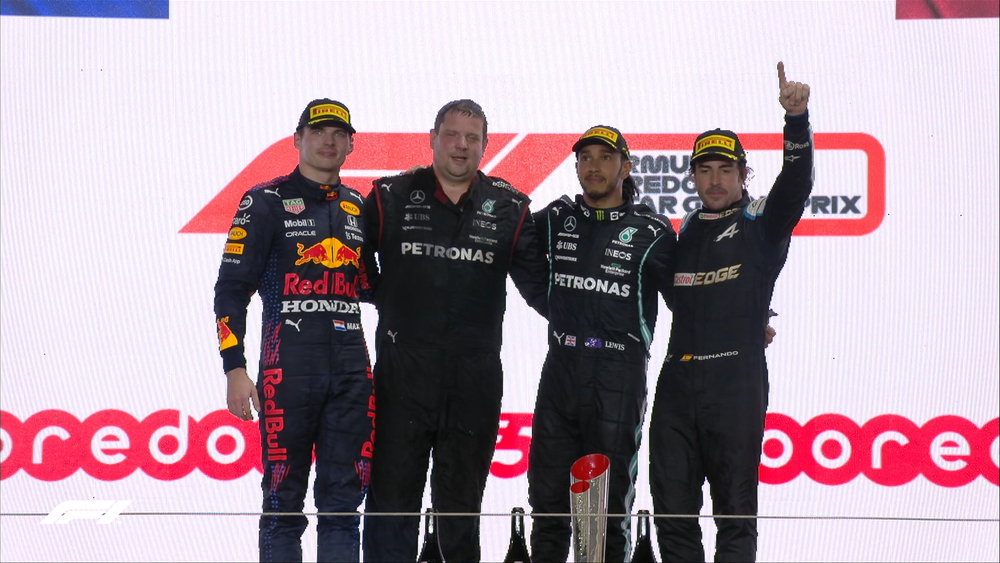 El podio y quien fue piloto del día fue Fernando Alonso con el Alpine, largando tercero y luego quedando segundo por unas 5 vueltas demostró que aún sigue vigente. Regreso al top 3 luego de 7 años cuando subió al podio en el GP de Hungría con Ferrari en el 2014.