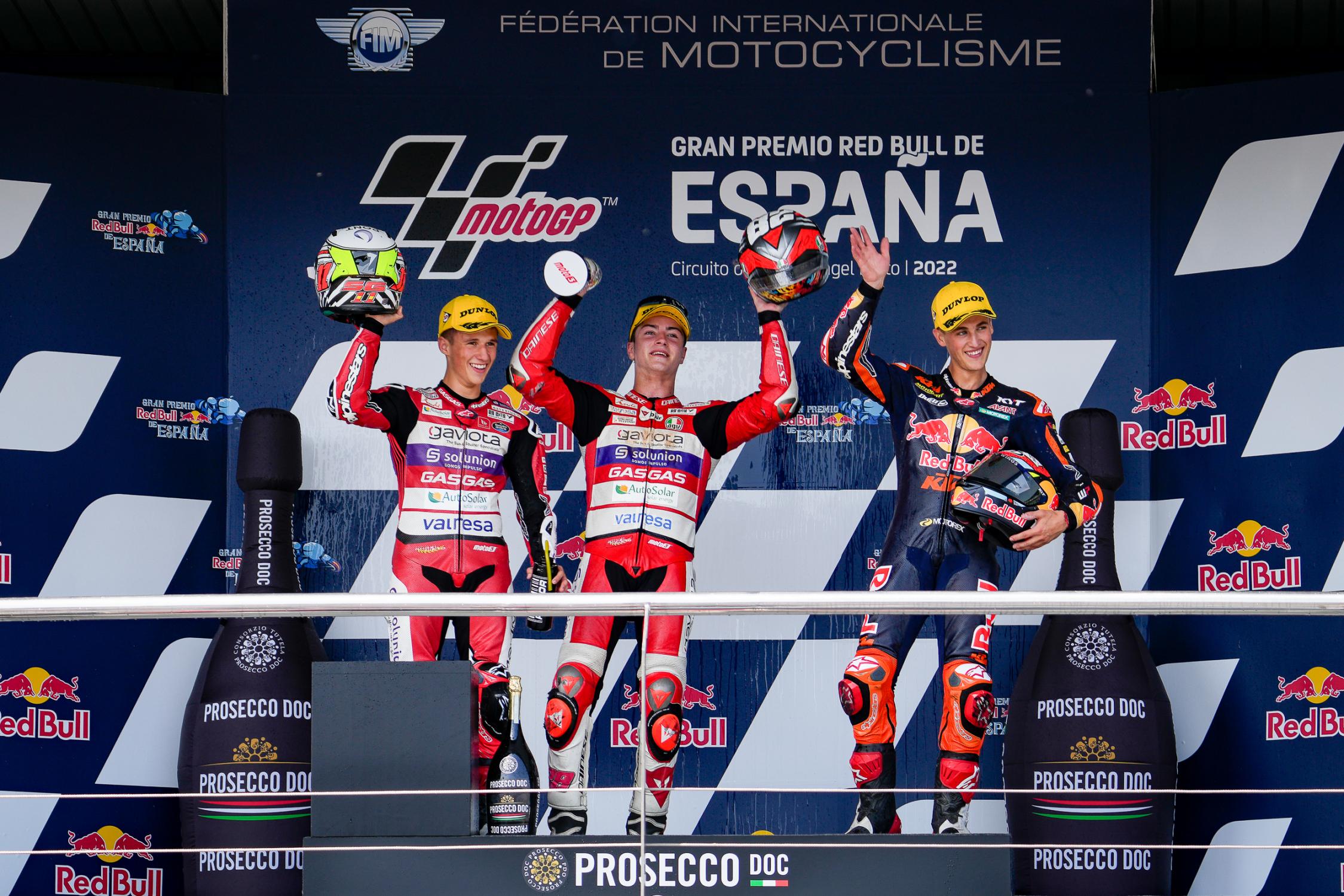 Categórico triunfo de Izan Guevara en el Gran Premio de España tras haber hecho una gran carrera con la moto de Gaviota GASGAS Aspar Team en las 22 vueltas a cumplir.