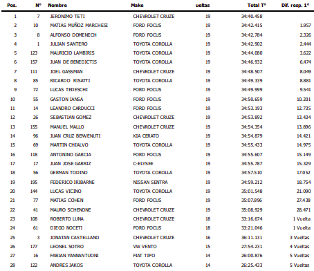 Al final la carrera quedaría en manos de Teti, seguido por Marchesi y Domenech, estos últimos hicieron el 2-3 para el Saturni Racing.
