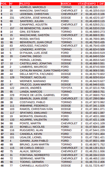 Agrelo con el Torino de Maquin Parts pudo hacer una vuelta de 1:46.315 en su segundo intento, ya que en la primera logró hacer una buena. Pero los neumáticos fueron buenos en la 2da vuelta.