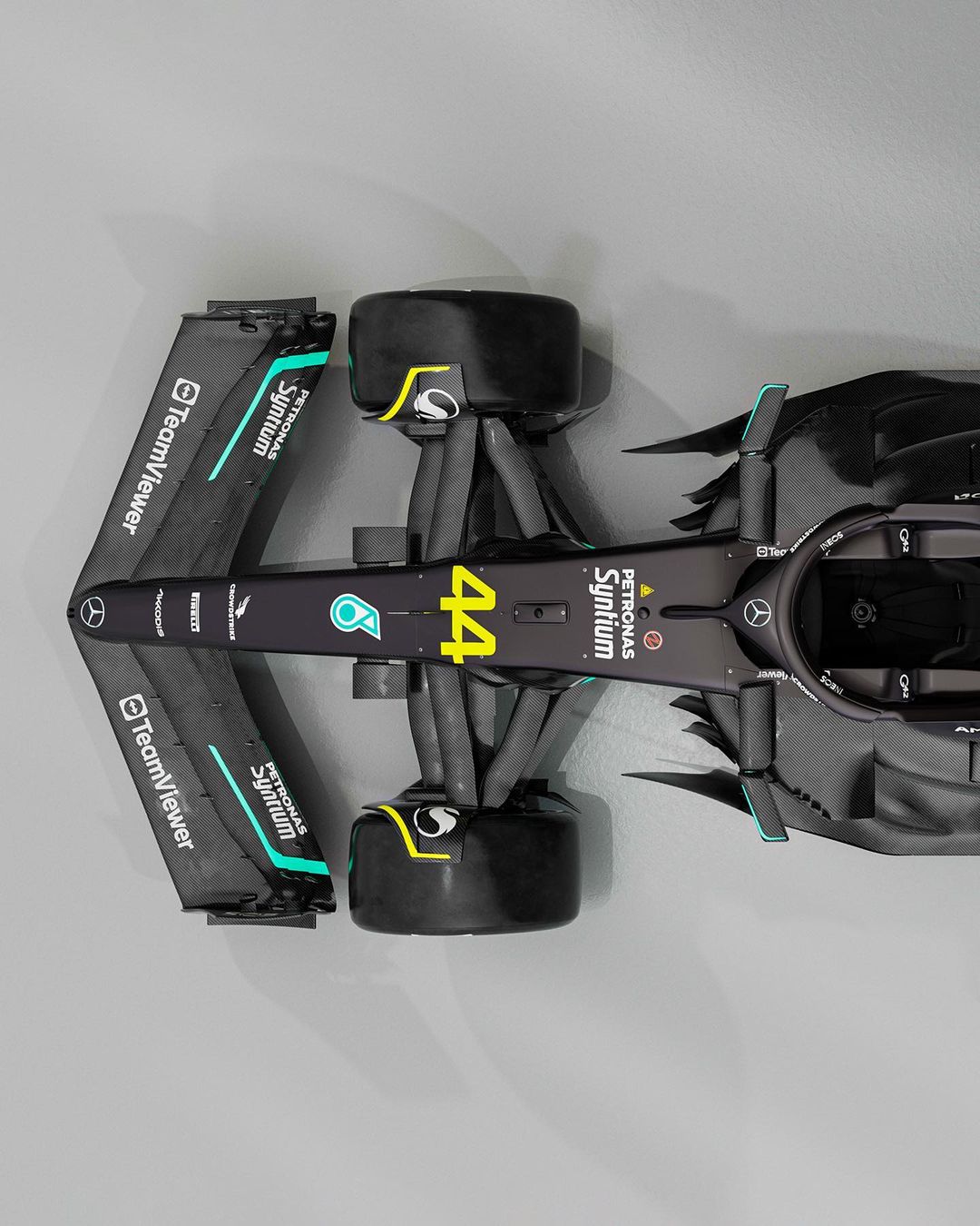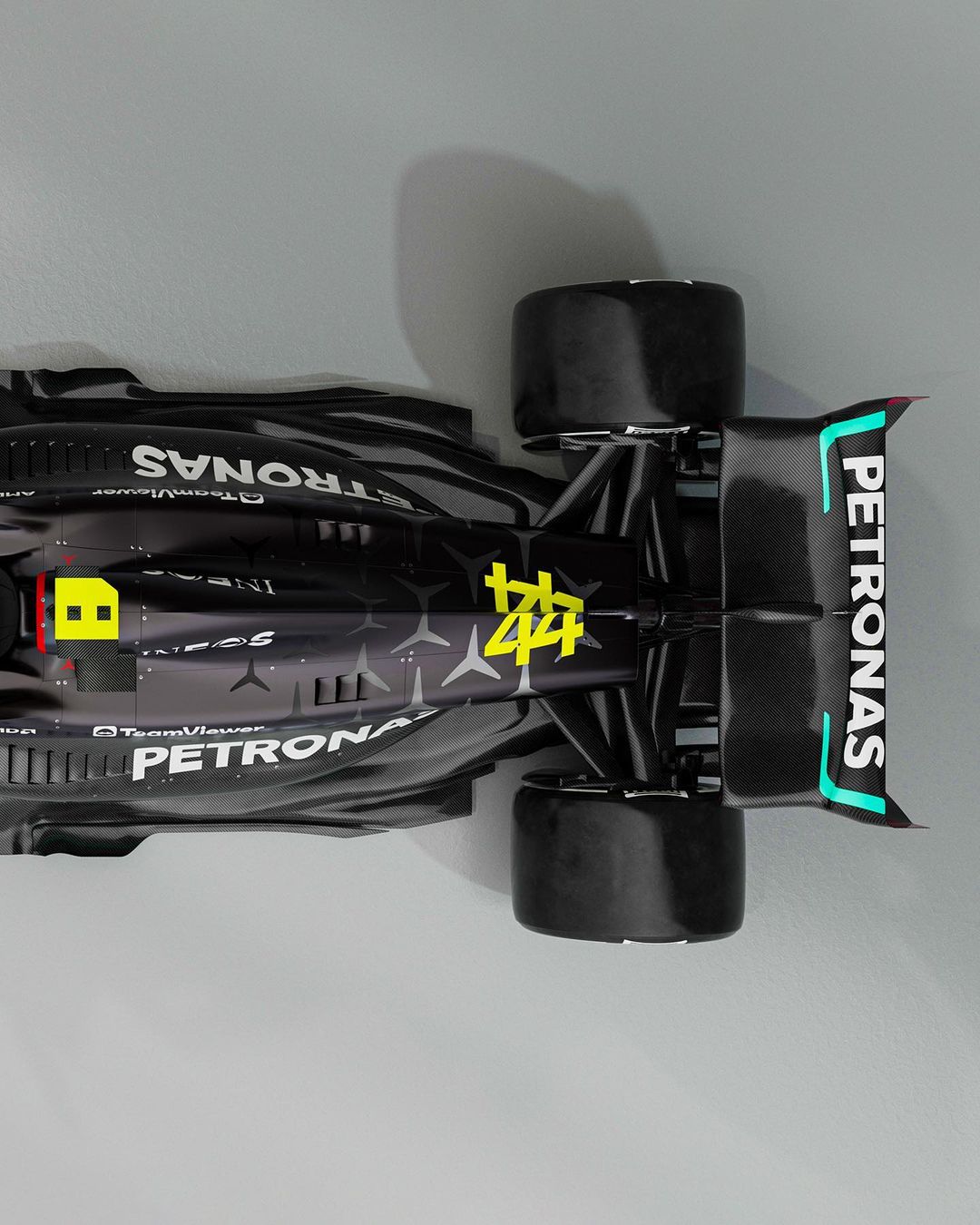 Como en el 2020 y 2021, Mercedes AMG ha decidido que este monoposto deje el color plateado más tradicional. Recordemos que este estuvo en el 2022.