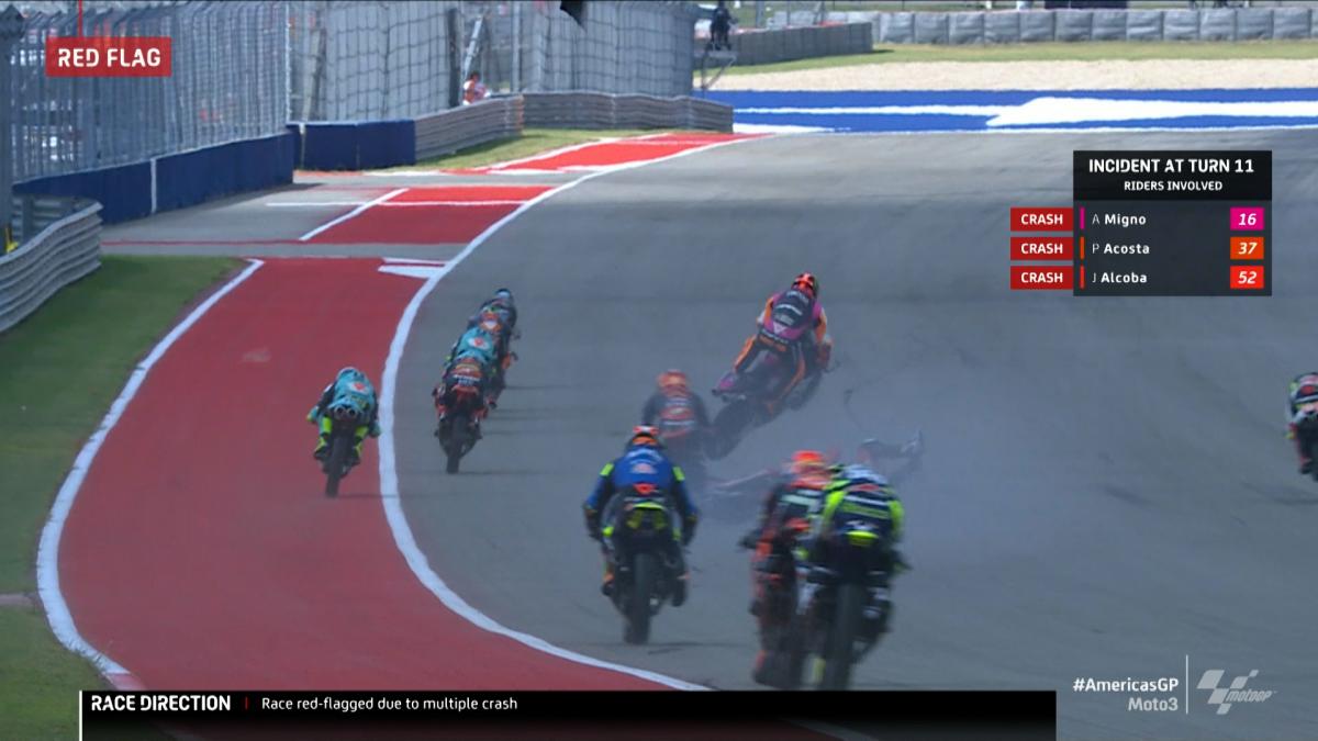 El MotoGP toma las mismas decisiones que la Formula Uno en caso de que haya bandera roja en una competencia, tras haber un situación con el tiempo o un accidente.