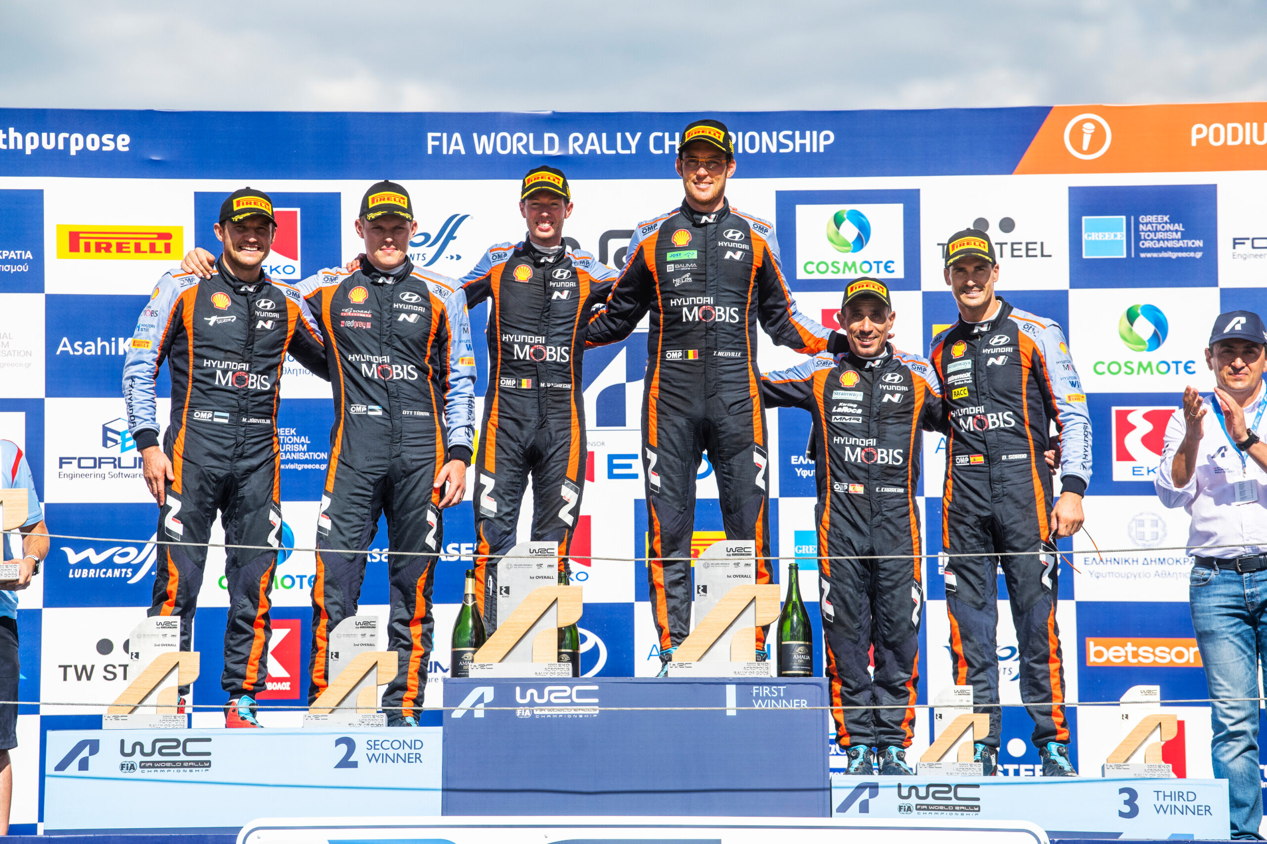 El top tres de la prueba finalizó con el español Dani Sordo a +1:49.7 que regreso al podio en una fecha del campeonato mundial tras varias fechas sin aparecer. Solamente se adjudicó el stage duodécimo en Grecia.